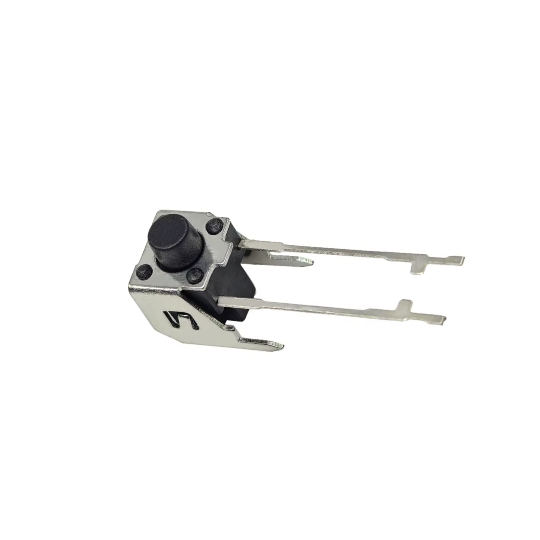 Fabricado con materiales de alta calidad, el pulsador garantiza una excelente conductividad eléctrica, larga vida útil y resistencia al desgaste. Su diseño en ángulo de 90 grados facilita la integración lateral en la placa, optimizando el espacio y la accesibilidad en el montaje final.