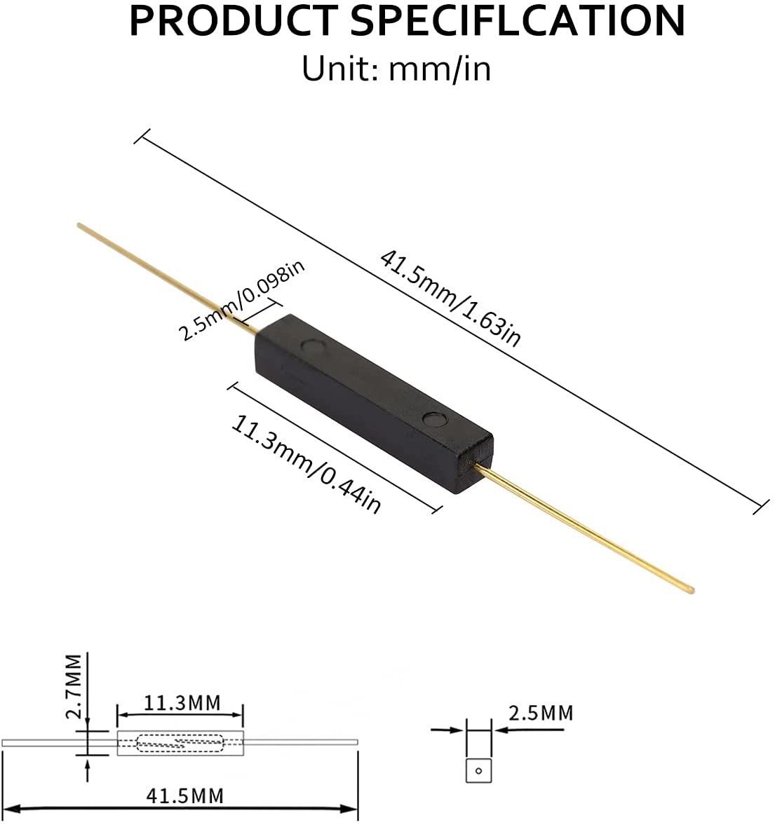 Reed switch magnético en carcasa de plástico ABS. Ideal para detección sin contacto en proyectos electrónicos y sistemas de seguridad. Voltaje de disparo 100 VDC, corriente de conmutación 0.5 A.