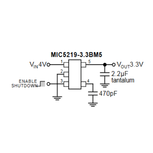 El MIC5219 LG33 ofrece salida de muy bajo ruido, un bajo coeficiente de temperatura y corriente de apagado casi nula, lo que lo hace compatible con aplicaciones de precisión, circuitos analógicos y digitales sensibles, incluyendo microcontroladores y sistemas portátiles. El control de habilitación/apagado es compatible con niveles CMOS/TTL, permitiendo integración flexible en diseños electrónicos modernos.