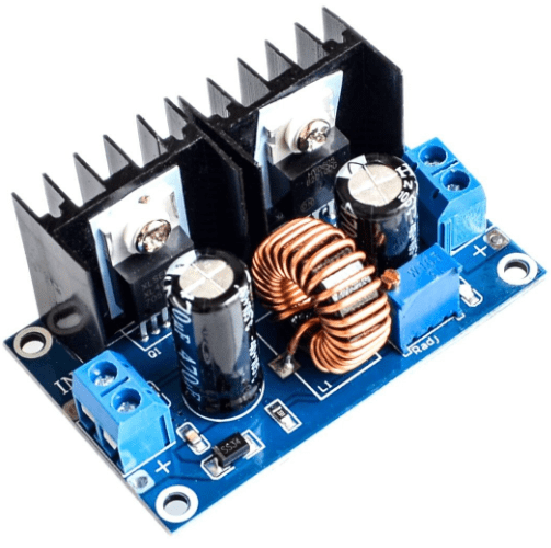 Regulador voltaje DC XL4016E1 alta potencia es un convertidor DC / DC PWM de frecuencia fija de 180 KHz (reductor), capaz de alimentar una carga de hasta 8 A con alta eficiencia, baja ondulación y excelente regulación de línea y carga. Este módulo le ayuda a alimentar una carga de alta potencia con voltaje estable.