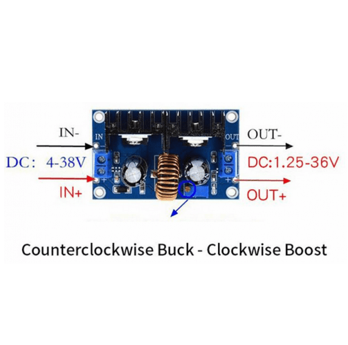 Regulador voltaje DC XL4016E1 alta potencia o regulador de conmutación. Regulación de chip XL4016 con protección de sobre intensidad, protección contra sobre temperatura, protección contra cortocircuitos.