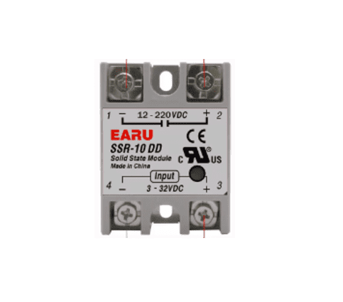 Relé de estado sólido SSR-DD 3~32VDC a 12~220VDC implementados en el control de cargas alternas, como resistencias, motores, bombillas etc.