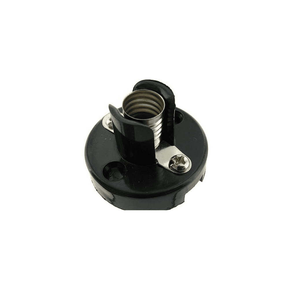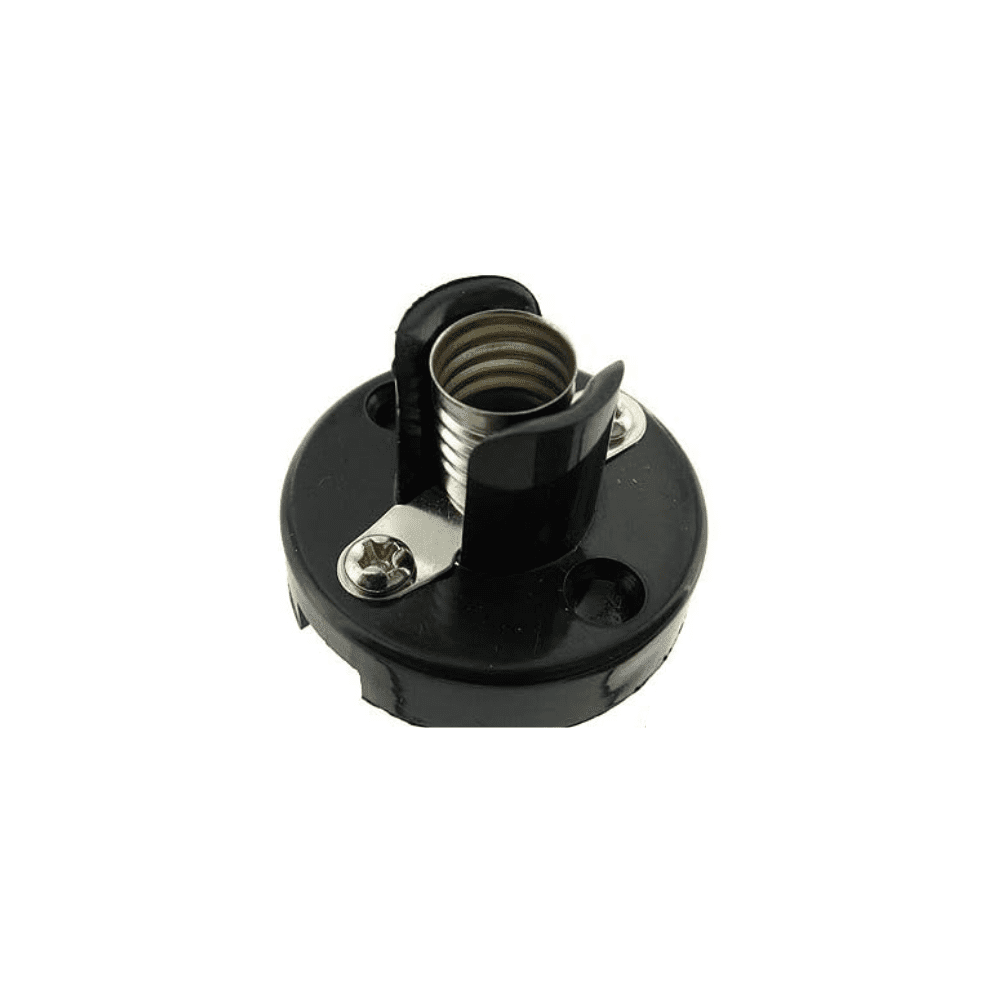 Roseta plástica pequeña, resistente y compacta. Soporte ideal para bombillos pequeños y fácil instalación.