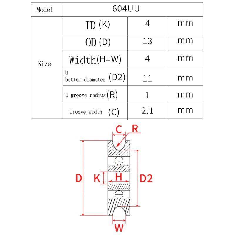 Su diseño específico con ranura en U permite un encaje perfecto en perfiles y guías, asegurando un desplazamiento lineal estable y reduciendo fricciones innecesarias. Con un tamaño compacto de 4x13x4mm, ancho de ranura de 2 mm y profundidad de ranura de 1 mm, este rodamiento U604ZZ ofrece precisión mecánica en cada movimiento de la extrusora, mejorando la calidad de impresión y prolongando la vida útil del equipo.