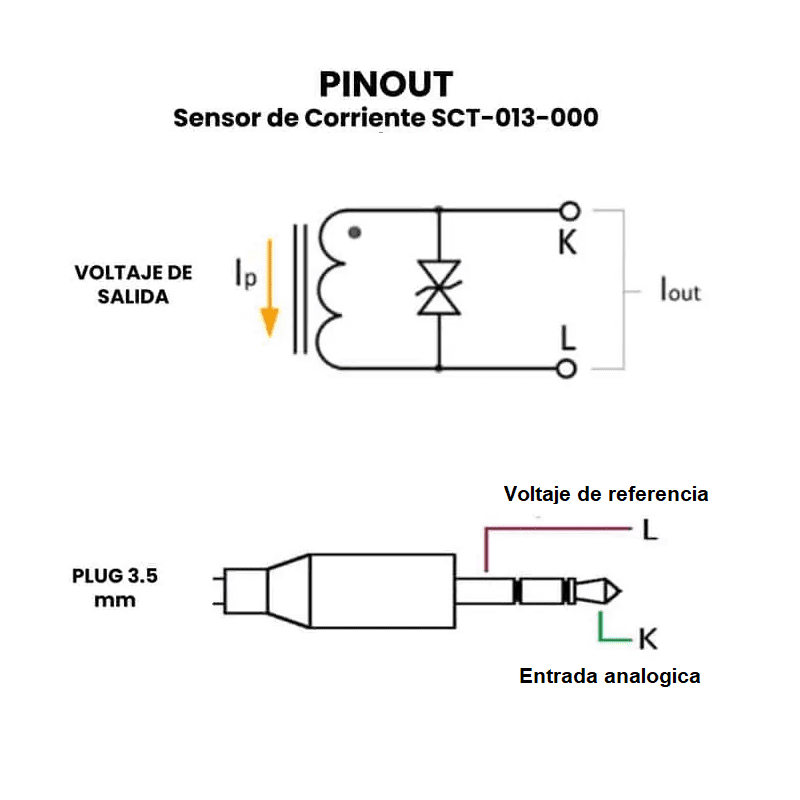 El Sensor de Corriente SCT-013-000 100A/50A es un transformador de corriente tipo clamp-on (abrazadera), diseñado para medir corrientes alternas sin conexión directa al circuito de potencia. Gracias a su diseño de núcleo partido y su salida de corriente proporcional, este sensor permite obtener mediciones seguras, precisas y libres de interferencias, ideales para sistemas de monitoreo de energía, automatización industrial o control de cargas.