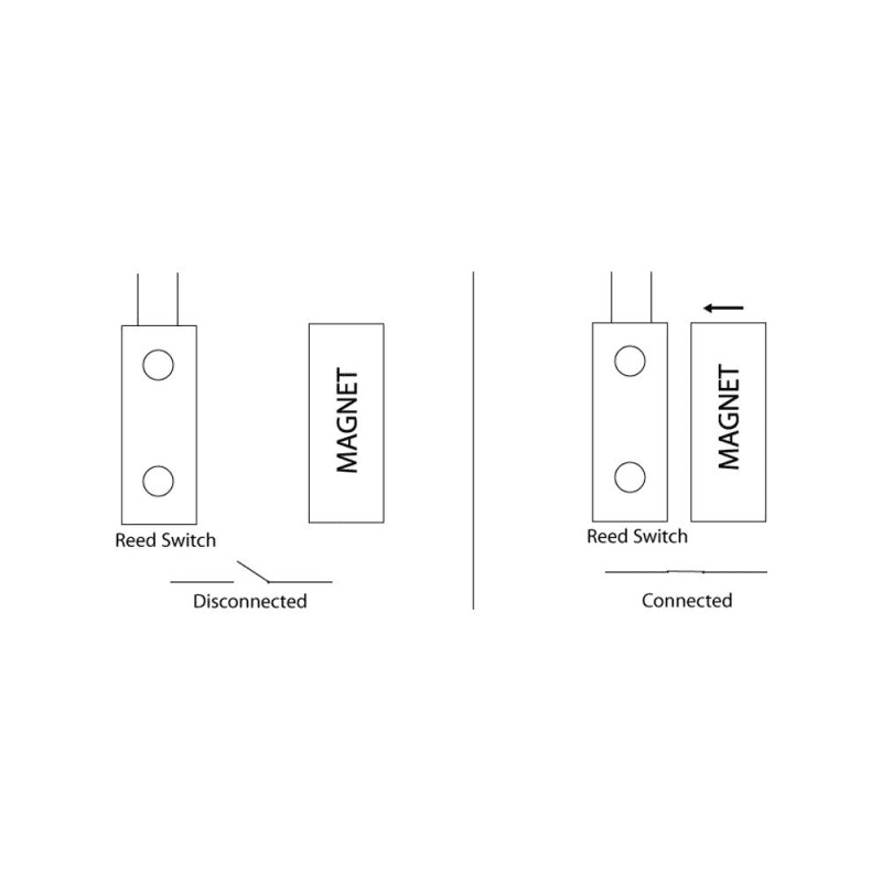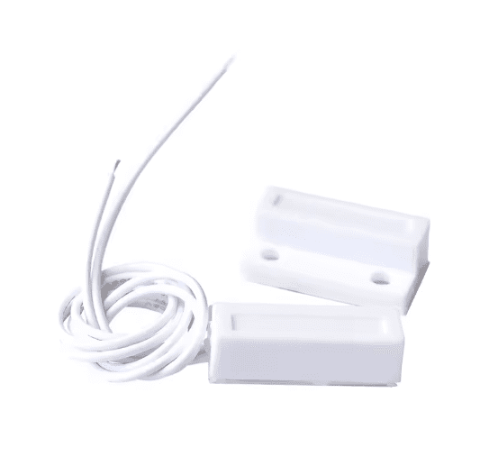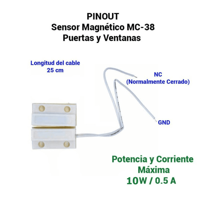 El Sensor Magnético MC-38 NC es un interruptor de seguridad normalmente cerrado, diseñado para detectar la apertura de puertas y ventanas en sistemas de alarma.