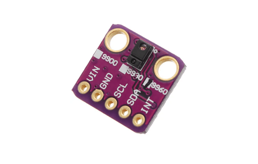 El APDS9900 permite la detección de luz ambiental y color RGB con precisión, así como proximidad de objetos en un rango de 10 a 20 cm, incluso detrás de vidrio oscuro. Su diseño incluye filtros de luz UV e IR, reduciendo interferencias y aumentando la precisión de medición. Además, es capaz de detectar gestos simples: arriba, abajo, derecha e izquierda, lo que lo hace ideal para interfaces sin contacto y proyectos interactivos.