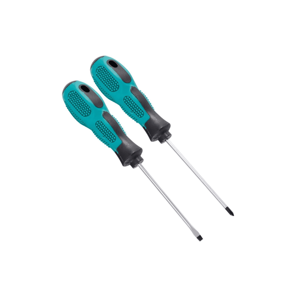 Set de 2 destornilladores pala y estrella, duraderos y ergonómicos para múltiples aplicaciones.