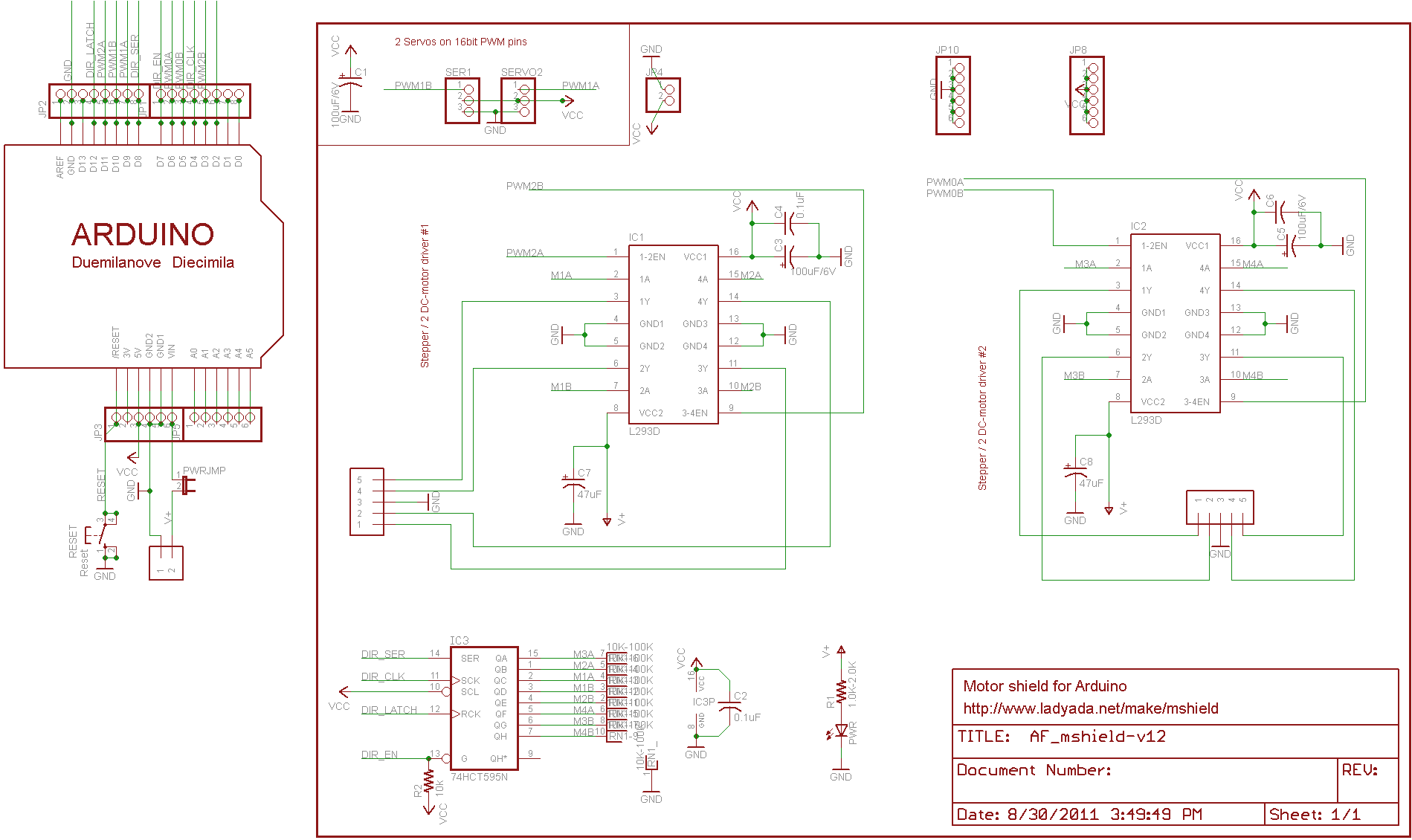 • Integrados: 2 circuitos L293D (4 puentes-H).