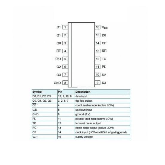 Funciones destacadas del SN74LS191N Contador Binario TTL 4 Bits Up/Down: