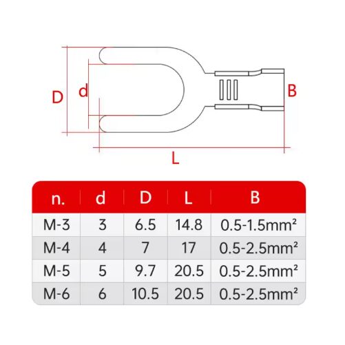 Gracias a su compatibilidad con procesos de crimpado estándar, la Terminal de Horquilla Metálica para Cable Eléctrico – Conector Tipo U es ampliamente utilizada por técnicos eléctricos, instaladores y en proyectos DIY donde se requieren conexiones confiables.