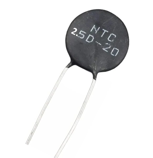 Termistor NTC 2.5D-20 2.5Ω 20mm es un dispositivo semiconductor de coeficiente de temperatura negativo diseñado para limitar la corriente de irrupción (inrush current) en equipos electrónicos y fuentes de alimentación. Su resistencia inicial de 2.5 ohmios ayuda a proteger componentes sensibles durante el encendido.
