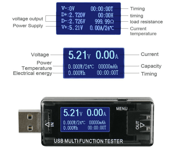 El tester usb 8 en 1 multimetro digital cuenta con un rango de medición de voltaje entre 4V y 30V, y una capacidad de corriente de hasta 5A, lo que lo hace compatible con una amplia variedad de dispositivos USB, cargadores, power banks y sistemas de alimentación. Su pantalla digital permite visualizar de manera clara y precisa los datos, mejorando la experiencia del usuario durante las pruebas.