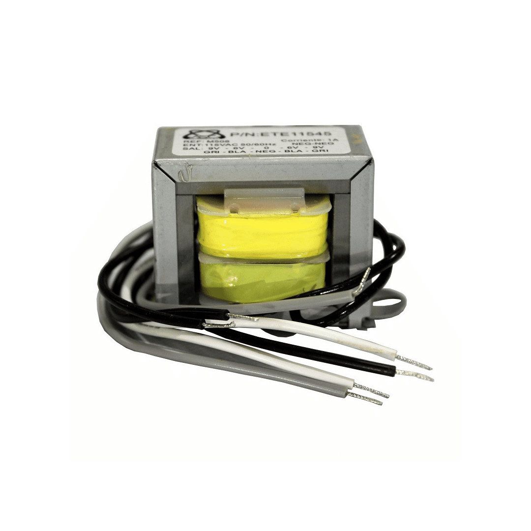 Transformador 12V con Tap Central, entrada 115V AC, 1A. Perfecto para proyectos electrónicos de baja potencia.