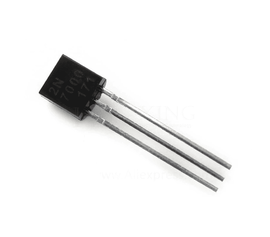 El Transistor MOSFET 2N7000 canal N permite conmutar señales hasta 60V y 0.35A con baja carga de compuerta, ideal para controladores y circuitos lógicos.