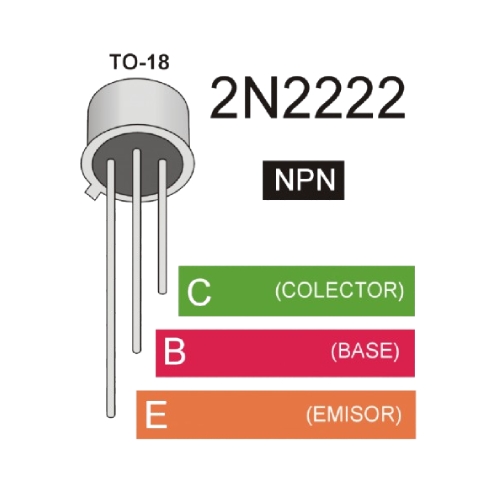 El Transistor NPN 2N2222A es un transistor de unión bipolar (BJT) de propósito general, encapsulado en un paquete metálico TO-18 de 3 pines. Es ampliamente utilizado en aplicaciones de conmutación y amplificación de señales de baja potencia.