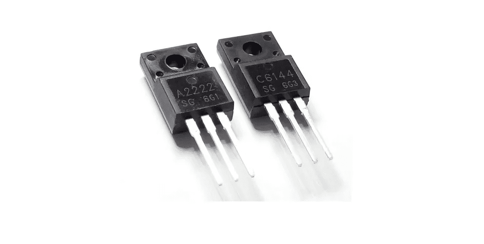 El conjunto Transistores A2222 y C6144 ofrece un par complementario NPN-PNP de 100V y 3A, ideal para amplificadores y sistemas de control de potencia.