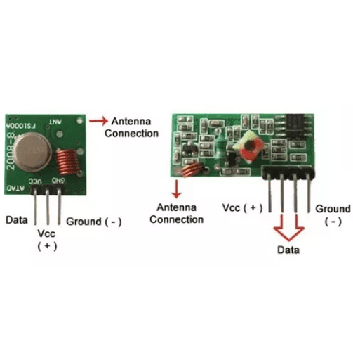 Estos pequeños módulos son un transmisor y un receptor de 433MHz, pueden adaptarse a todo tipo de microcontrolador, board arduino, AVR, Pic, entre otros.