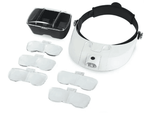 visor óptico con iluminación led diseñado para ampliar detalles con iluminación integrada, ideal para trabajos de precisión y electrónica.
